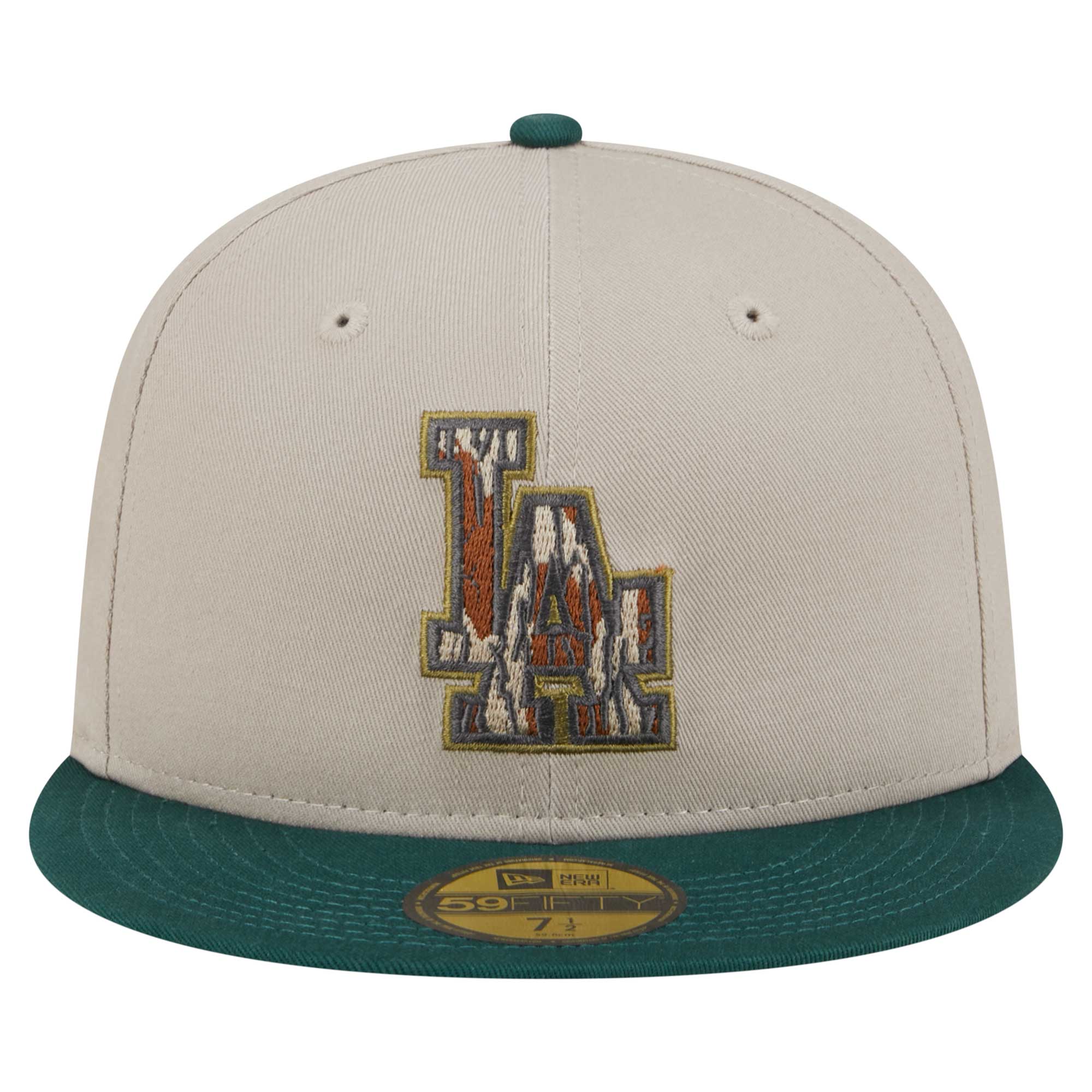 Men’s Los Angeles Dodgers New Era Natural/Hunter Green Lifestyle Tree Bark Fill 59FIFTY Fitted Hat