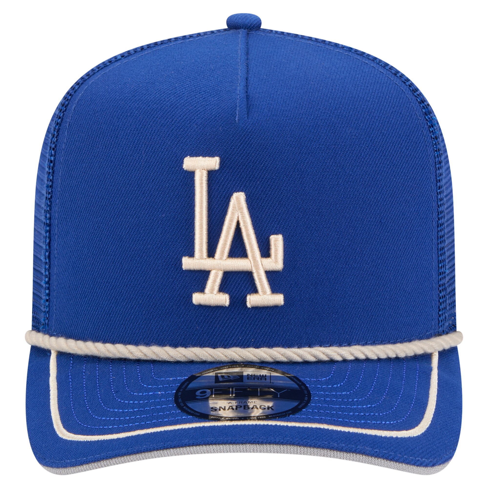 Top your game day look off with the perfect accessory in the form of this Los Angeles Dodgers Vintage Rope Trucker A-Frame 9FIFTY Adjustable Hat from New Era. This Los Angeles Dodgers hat features an embroidered team graphic with raised details on the solid front panels and a rope decoration that draws the eye to the front of the cap. The four mesh mid and rear panels provide added breathability, ensuring you stay cool and comfortable whether you’re at the game or out and about.